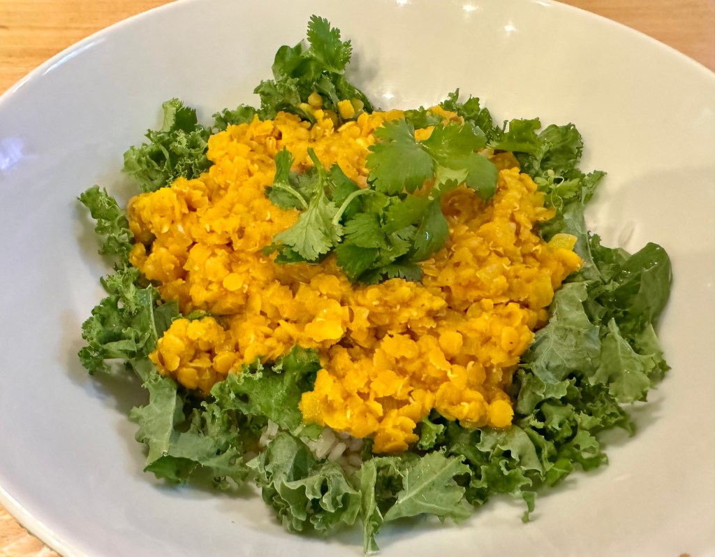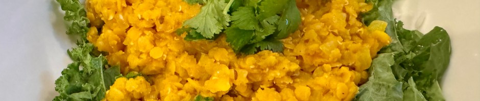 We were supposed to be having chicken tonight but there were no rotisserie chickens available at Costco when Sarah stopped to pick one up. So we looked at our menu and decided we had all the ingredients for Afghani dal and went forward with a new dinner plan. Dal is another name for lentils and in this case we used red lentils (coral colored) which turn yellow when you cook them. They are quick cooking so are a great choice for weeknight dinners.