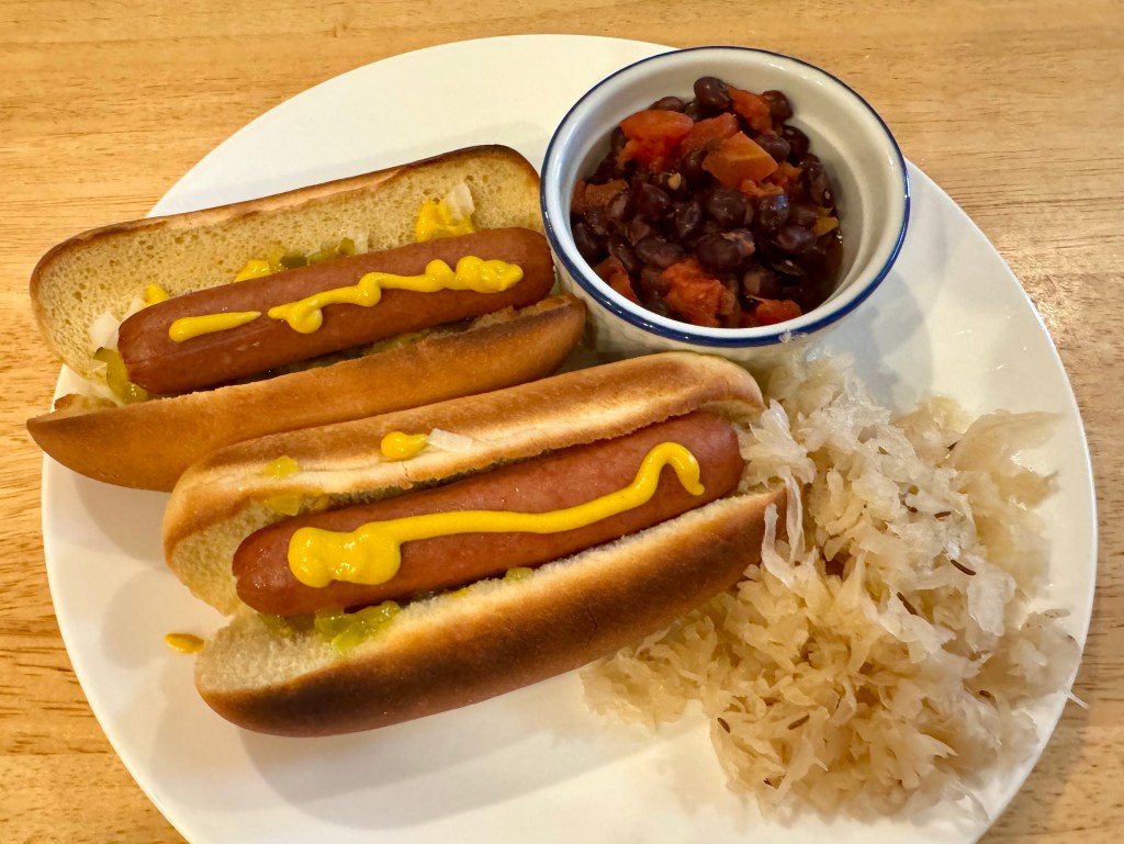 I know this is not the healthiest dinner we could eat but sometimes Nathan’s hot dogs with sauerkraut just hits the spot! This tasted so good and we enjoyed it a lot.