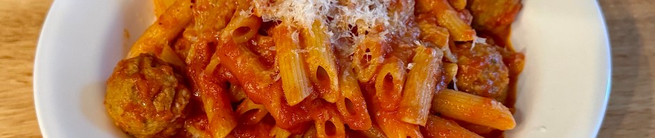 Tonight we had a lazy dinner. It was comprised of Barilla pasta (which we did have to cook), Rosina’s frozen meatballs, and Rao’s jarred vodka sauce. It turned out surprisingly good. I really enjoyed the Rao’s vodka sauce. The main reason that I bought it was because it was cheaper than Rao’s basil and tomato sauce which we usually buy. I think from now on I will stick with the vodka sauce, BTW there is no vodka flavor in the sauce.The meatballs were perfectly serviceable for frozen meatballs. We grated the parmesan cheese from a block I bought from Costco,