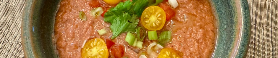 While many people are sighing in relief that the summer is over around Labor Day here in Northern California, if you are not close to the ocean, August and September are the two hottest months. From what I read it’s due to seasonal lag when the Pacific Ocean reaches its peak temperatures causing the marine layer to dissipate and ocean breezes to subdue. This also allows for dry, off-shore winds to develop such as the Santa Ana winds and wildfire season to be at its worst. Therefore we are trying to keep the house cool by having gazpacho.