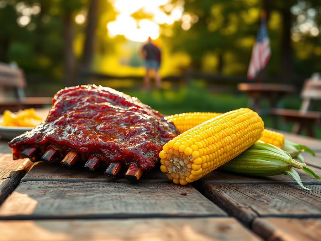 Ha ha, this is what artificial intelligence thinks my dinner would look like. I guess we must be sitting outside at a picnic table after having grilled our ribs. Unfortunately it was 100F and we stayed inside and heated up some pre-made ribs that we had bought at the grocery store. We also made the corn in the microwave. It was a very nice dinner but not nearly as idyllic as the picture suggests.