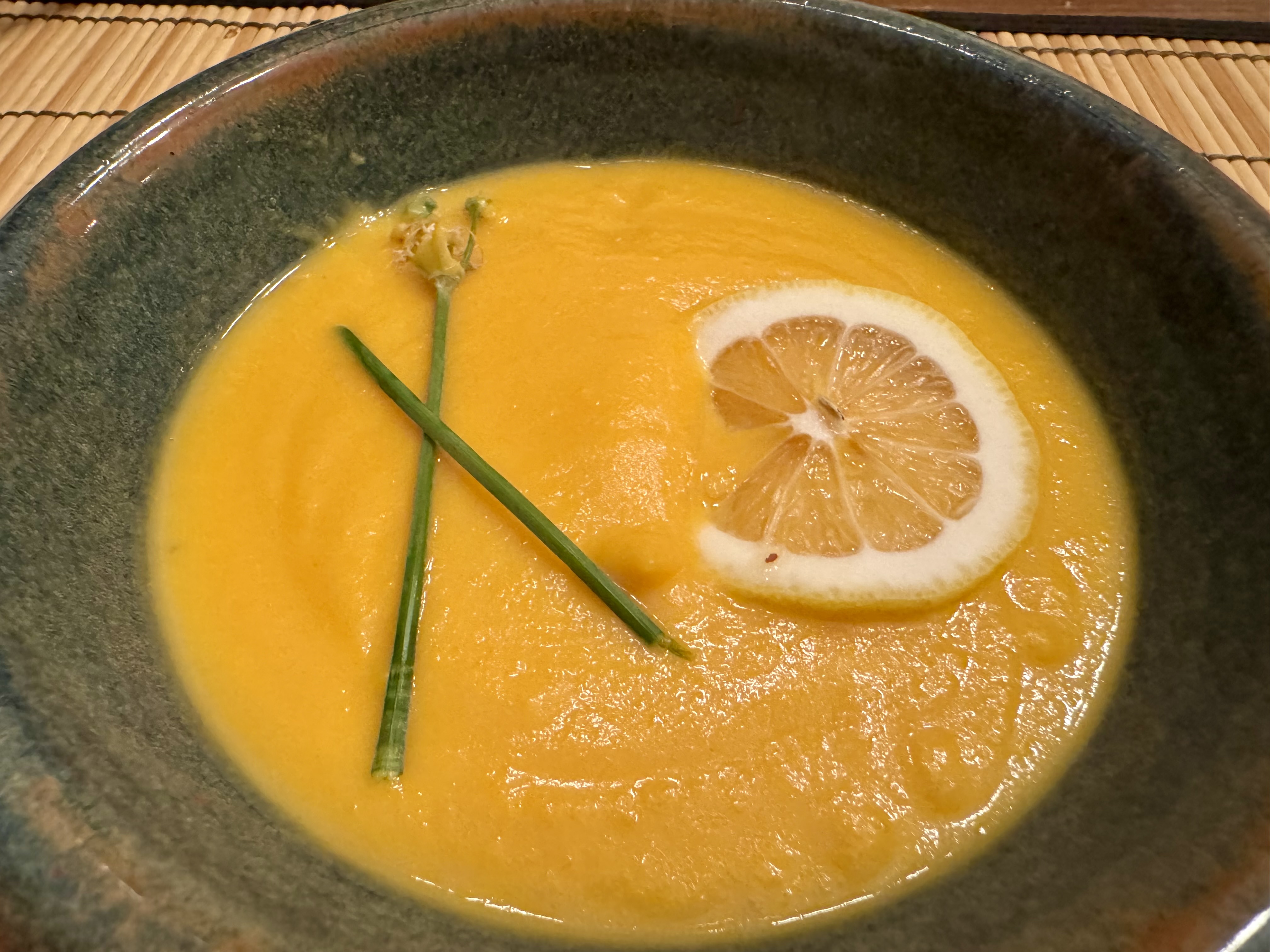 We did our celebrating of Rosh Hashanah on Friday night because on Monday, the actual date, it is supposed to be in the upper 90s and too hot for baking and making soup. Sarah made a lovely round challah in the morning and I made our usual Autumn soup and a plateful of symbolic foods. We toasted each other and hoped for a more compassionate and peaceful 5786.
