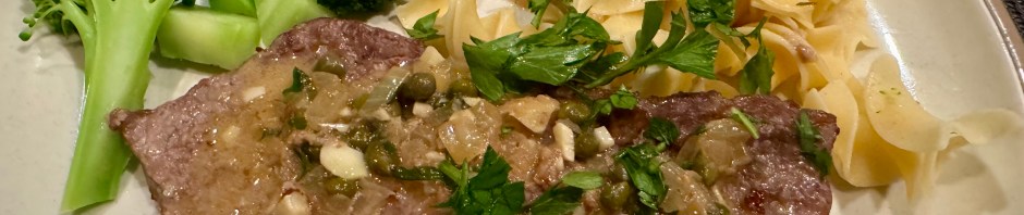We tried something new for dinner. We had found some very thinly sliced beef. The pieces were top round but looked well-marbled. Jon did a quick pan-fry and we served the meat piccata style with noodles and broccoli. Unfortunately the meat was very chewy and basically tasteless. We have lots of leftover noodles that we will try serving with chicken piccata on Friday. Hopefully that will work better.