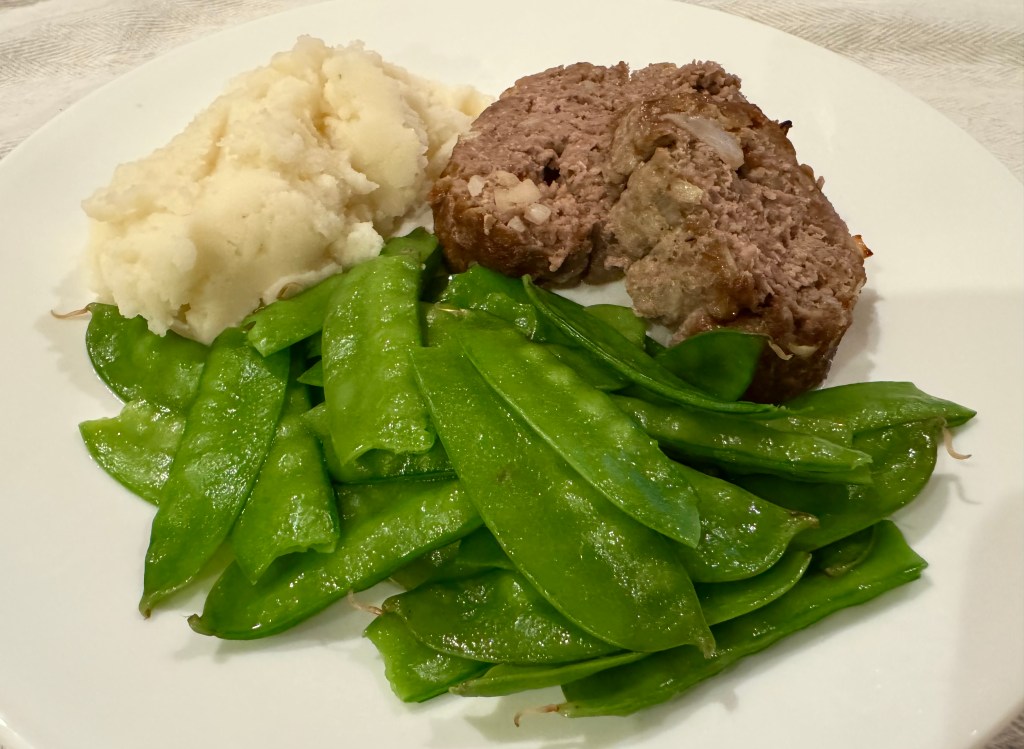 Now that John has the green light to eat what he wants again he chose meatloaf. I have not made meatloaf in a long time except for dabbling in trying to make it with oatmeal once last year. Saturday’s meatloaf turned out kind of tough. I used my mom’s method for making it—ground beef, an egg, some breadcrumbs, onion, Worcestershire sauce, salt, and garlic powder. It just did not turn out quite right. Sigh. I think I will email my sisters to get the proportions right. All in all it was just an okay dinner.