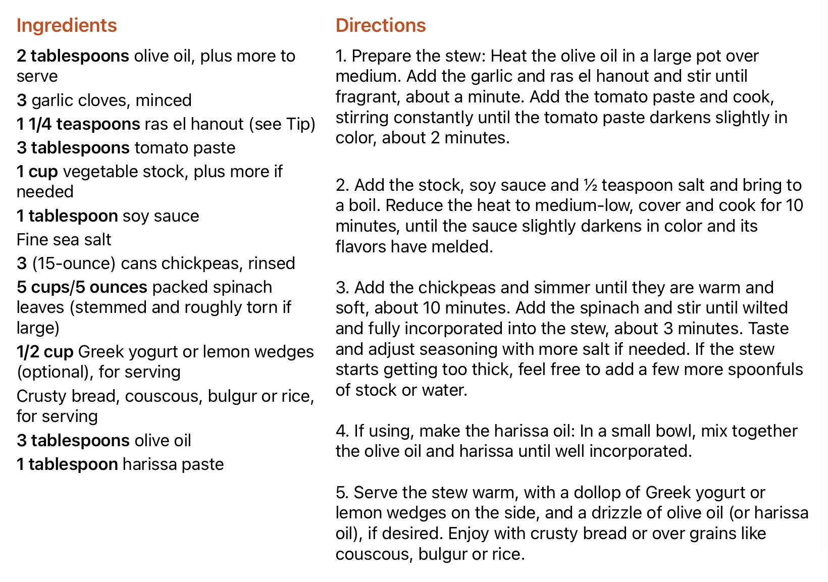 Ras el hanout chickpeas and greens