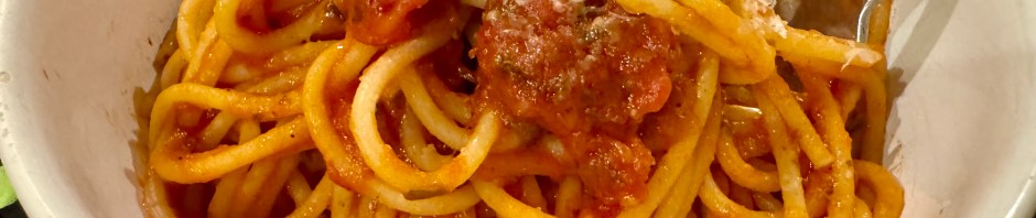 The meatballs are hidden under all the spaghetti.