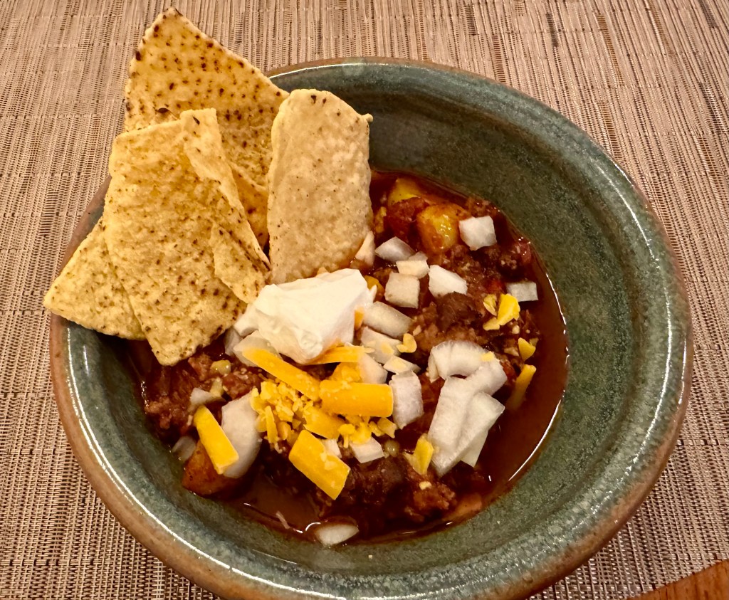 😊 Delicious chili made with Muir Glen chili starter.
