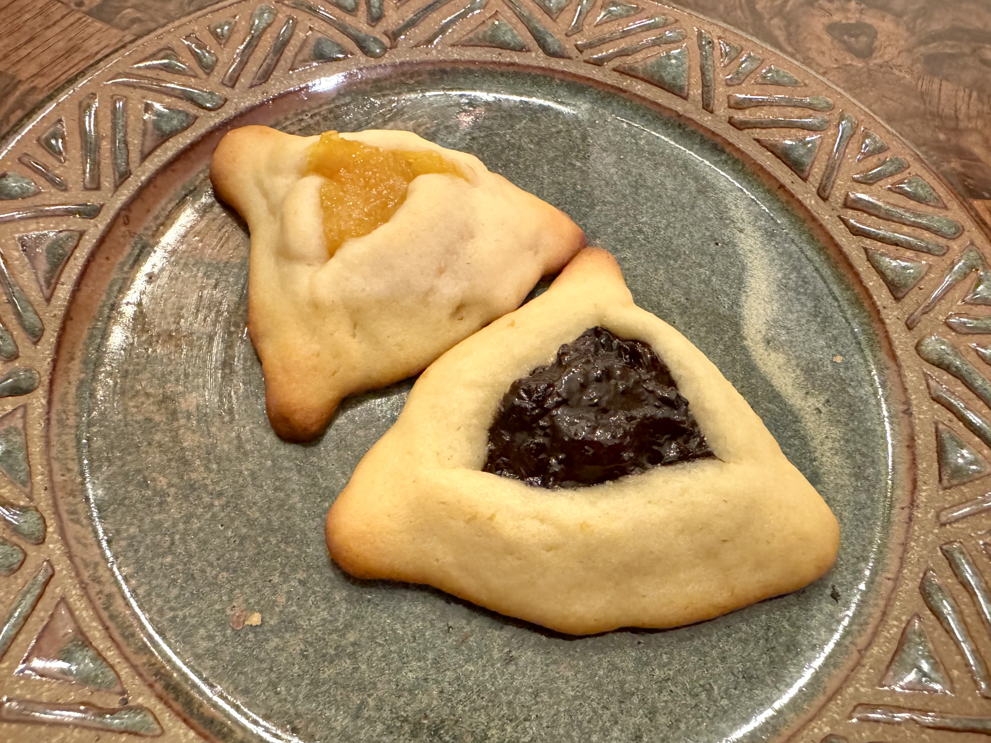 As a special treat Sarah made Hamantaschen which literally translates into Haman’s hat. The dough is sugar cookie and they are stuffed with apricot and prune purée. So good!