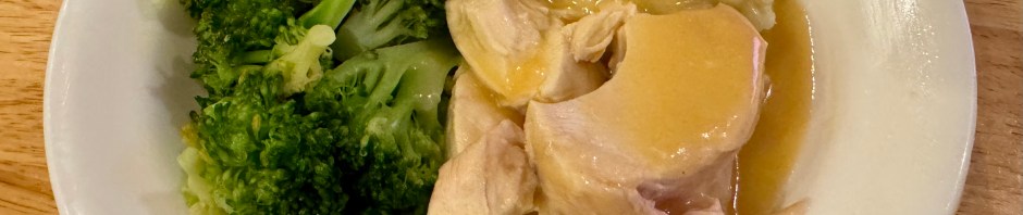 John heats the chicken breast slices slowly in the gravy and I take care of cooking the broccoli and preparing the mashed potatoes. The potatoes for tonight’s dinner are the Main Street brand from Costco. They are really good! I always appreciate a quick, tasty, easy dinner!