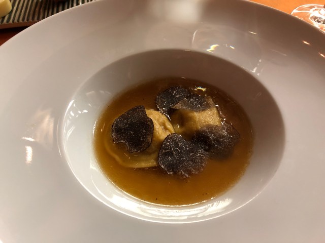 Well, that risotto must have been made with lobster stock. It was so delicious that daughter and I wanted to turn our perfectly fine pasta back to the kitchen and exchange it for John’s dish.