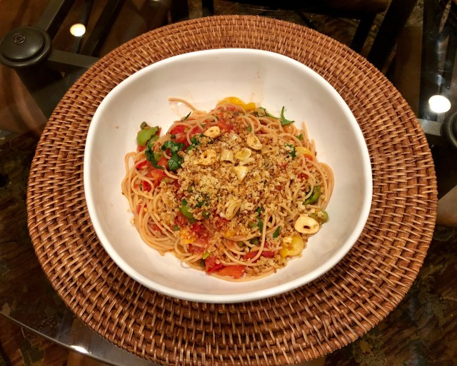 Whenever our son comes to visit he always requests his favorite. Surprisingly I do not recall making this for him when he was a kid. This dish is actually just some of his favorite things – meatballs, noodles, gravy, and green beans. As usual we buy the frozen meatballs and jarred savory beef gravy. We add some red wine to the gravy to thin it out a bit. I have decided that the next time I make this for him I am making my own meatballs. I think it will make his favorite dish even more favorite.