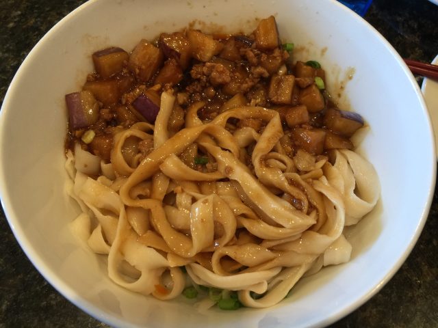 I chose this dish because I thought it would be vegetarian but instead it was eggplant and ground pork. The noodles are hand-cut. I did not eat this entire giant bowl of noodles, eggplant, and pork. John has a healthy portion of leftovers left to eat.