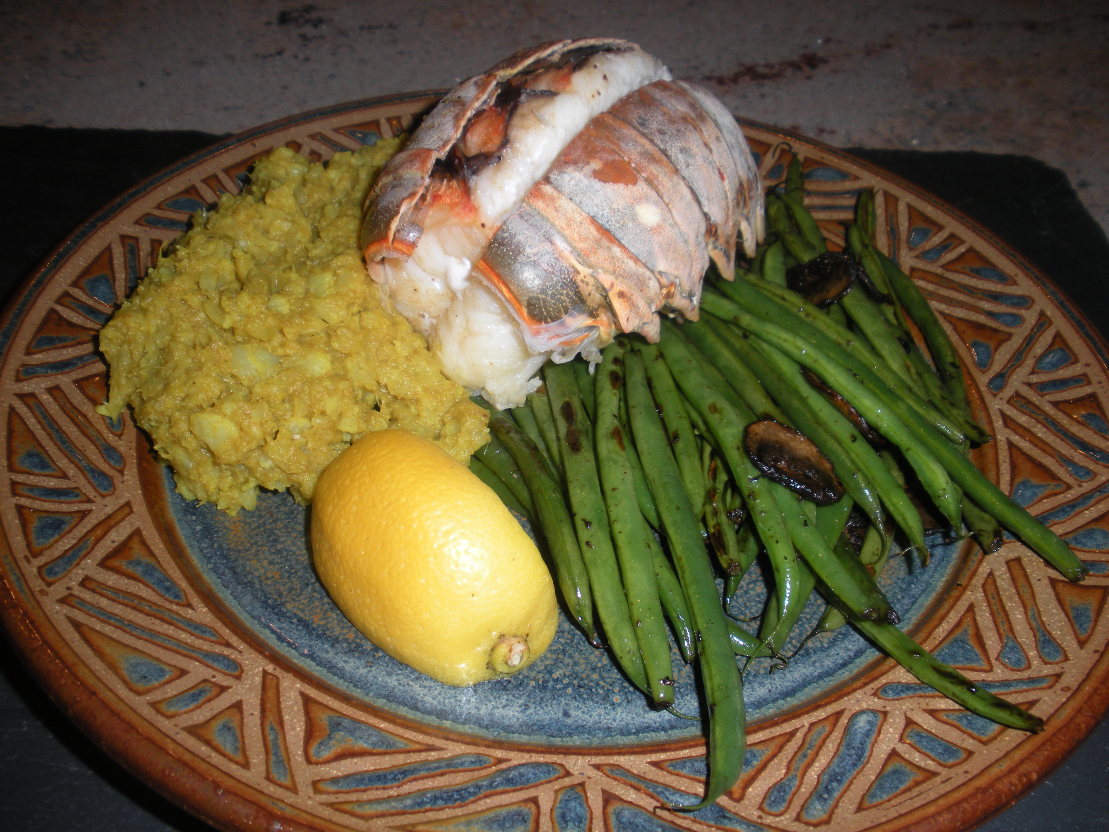 The reason there is no chicken on Chicken Monday is because we bought these lobster tails at Costco on Saturday and they needed to be eaten. And it is not too big a sacrifice to substitute lobster for chicken.