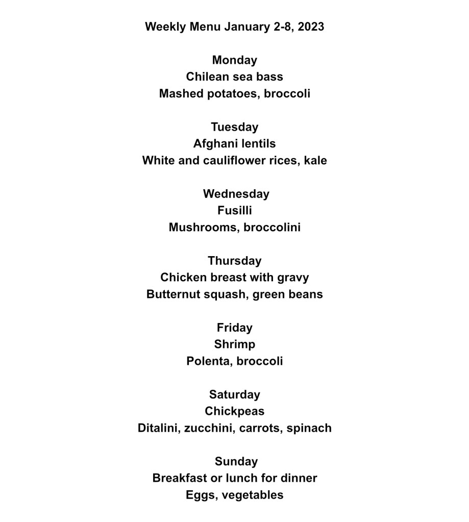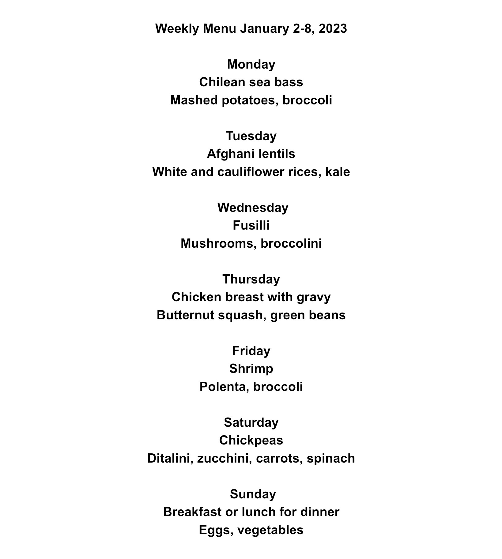 I am starting off the new year with one of the best “diet” dinners in our repertoire, Chilean sea bass with delicious sides. John roasted the sea bass in a 400F oven for 13 minutes. It was flavored with olive oil, salt, garlic powder, Old Bay, and tarragon. It turned out super luscious. While John and our daughter finished up the leftover mashed potatoes from New Year’s Eve, I made a combo of half farro and half cauliflower rice seasoned with soy sauce. Broccoli is often our go-to vegetable. I cooked it in a splash of water and a pat of butter.